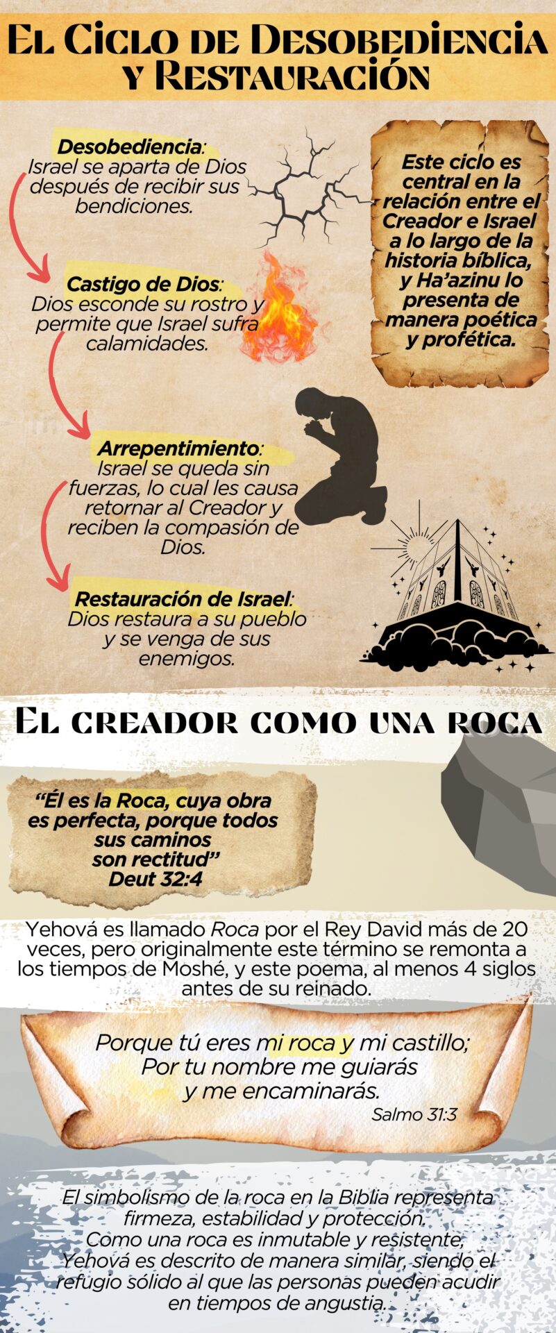 A lo largo del ciclo de desobediencia, castigo, arrepentimiento y restauración, se revela el amor inquebrantable de Yehováh, quien, a pesar de la rebelión, siempre ofrece una vía de regreso. Este mensaje sigue siendo relevante, recordándonos que aunque podamos alejarnos, Yehováh siempre estará dispuesto a restaurarnos si volvemos a Él con un corazón arrepentido.