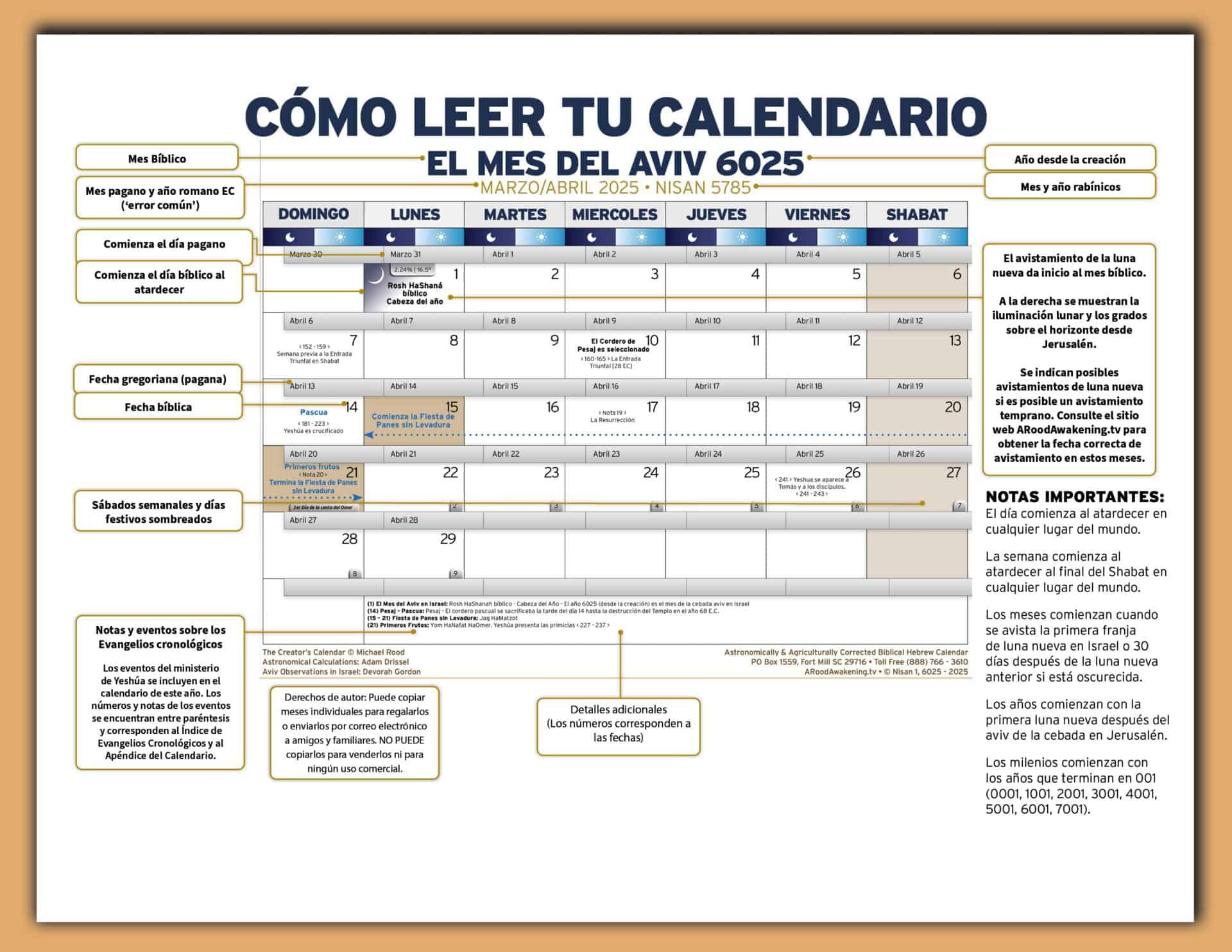 - Shabats semanales y Días de las Fiestas de Yehováh sombreados