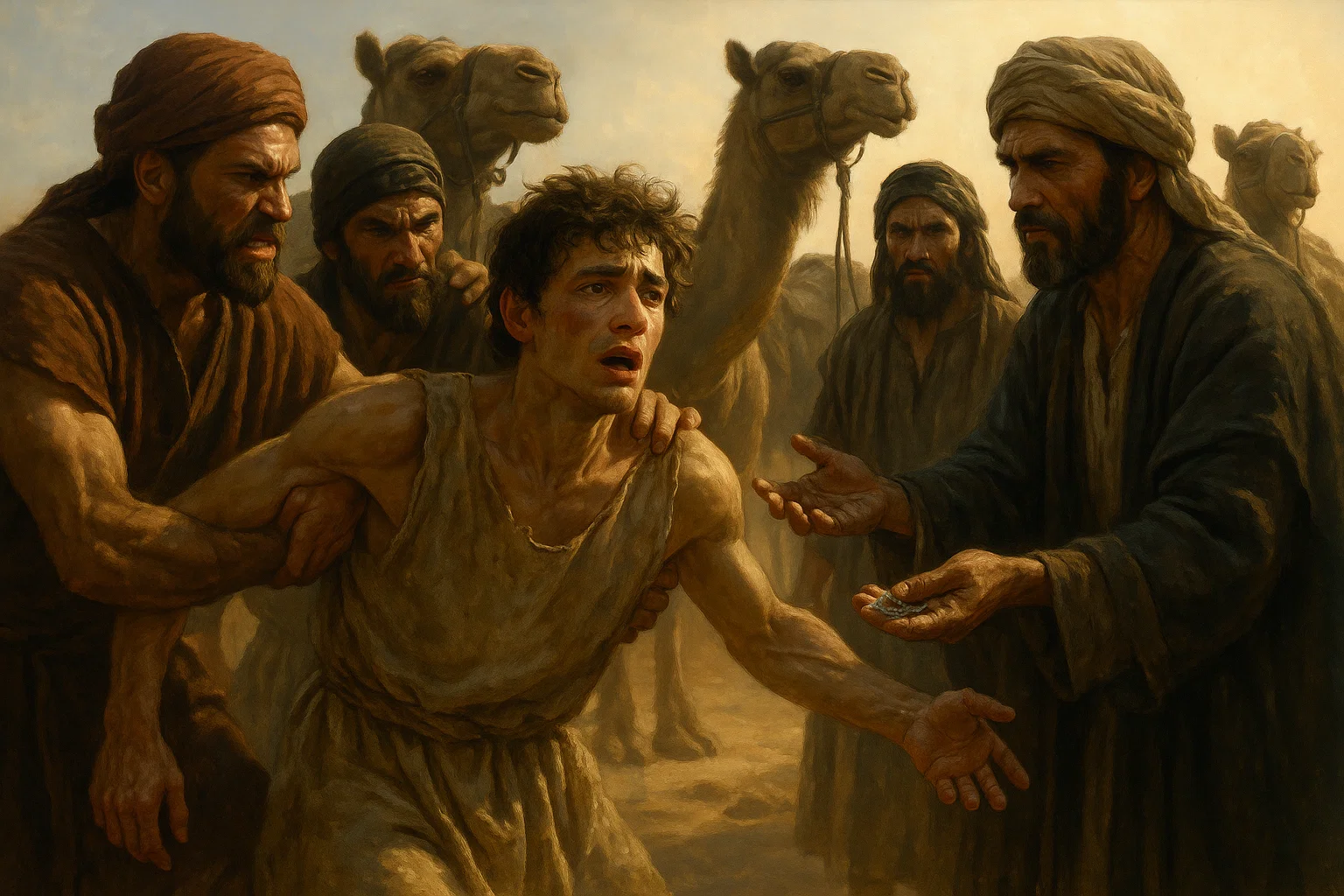 25Y se sentaron a comer pan; y alzando los ojos miraron, y he aquí una compañía de ismaelitas que venía de Galaad, y sus camellos traían aromas, bálsamo y mirra, e iban a llevarlo a Egipto. 26Entonces Judá dijo a sus hermanos: ¿Qué provecho hay en que matemos a nuestro hermano y encubramos su muerte? 27Venid, y vendámosle a los ismaelitas, y no sea nuestra mano sobre él; porque él es nuestro hermano, nuestra propia carne. Y sus hermanos convinieron con él. 28Y cuando pasaban los madianitas mercaderes, sacaron ellos a Yosef de la cisterna, y le trajeron arriba, y le vendieron a los ismaelitas por veinte piezas de plata. Y llevaron a Yosef a Egipto.