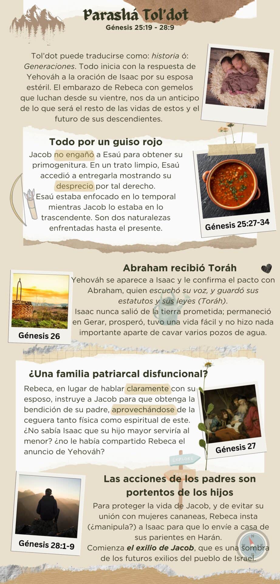 Con frecuencia decimos que la historia es cíclica, es decir que se repite una y otra vez. Cuando leemos con atención las historias que nuestro Padre Yehováh quiso que conociéramos, nos damos cuenta de que lo sucedido a los patriarcas, son sombras de lo que habría de ocurrir al resto de pueblo de Yehováh; de esa manera Él nos está dando a conocer el final, desde el principio.