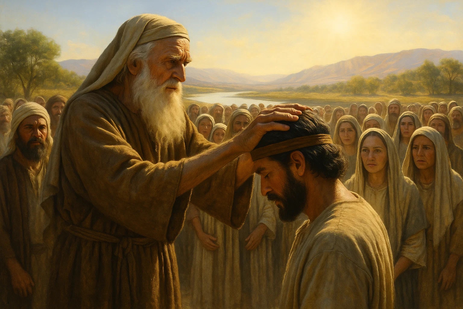 Moshe, ya con 120 años, anuncia que no cruzará el Jordán y que su tiempo de liderazgo llega a su fin. Declara a Israel que Yehováh mismo pasará delante de ellos y destruirá a las naciones enemigas, y que Josué los guiará en la conquista. Con voz de padre, exhorta a Israel: “¡Sé fuerte y valiente! No temas ni te desanimes, porque Yehováh tu Elohim va contigo; Él no te dejará ni te abandonará.” Entonces, Moshe escribe toda la Torá y la entrega a los sacerdotes y a los ancianos, ordenando que cada siete años, en la Fiesta de Sukkot, toda la nación —hombres, mujeres, niños y extranjeros— se reúna para oír su lectura y aprendan a temer a Yehováh. Luego Moshe confirma a Josué como el nuevo líder delante de todo el pueblo. También revela que, después de su muerte, el pueblo se apartará y seguirá a otros dioses. Por ello, Yehováh le da a Moshe un cántico profético para servir como testigo contra Israel en generaciones futuras.